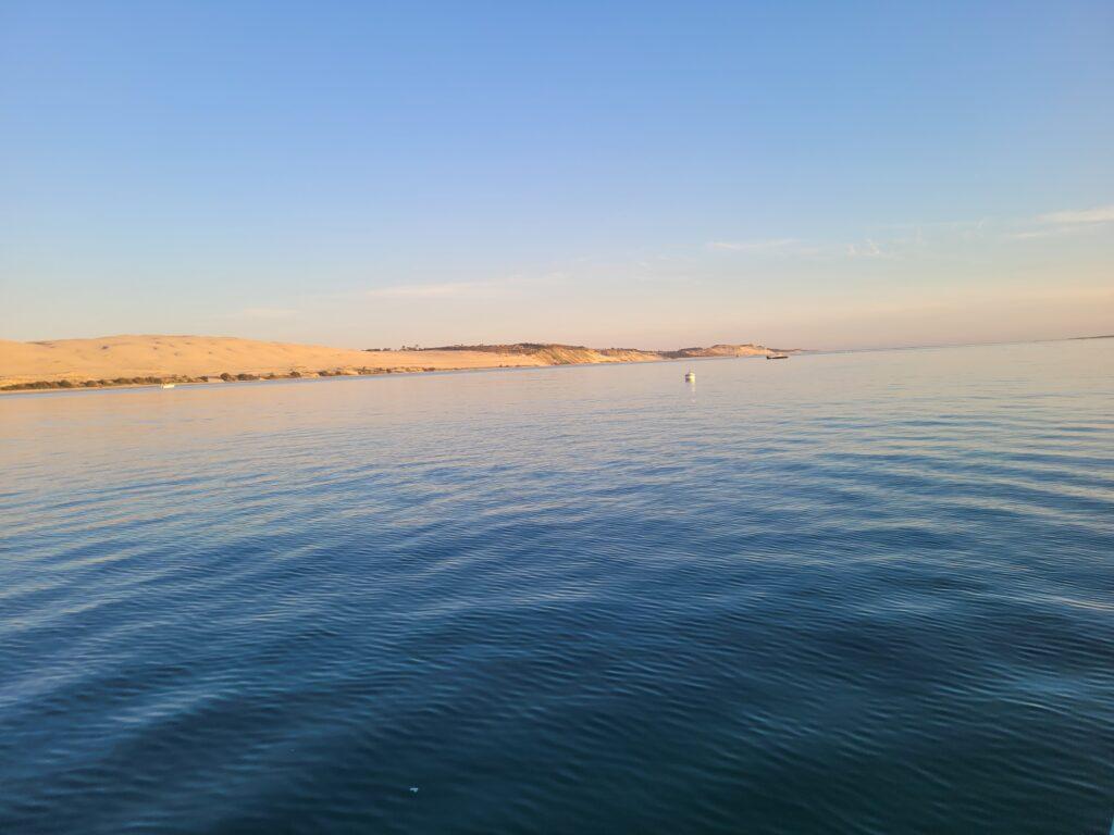 À basse mer, la dune du Pilat bloque l’océan, et le plan d’eau devient une patinoire.